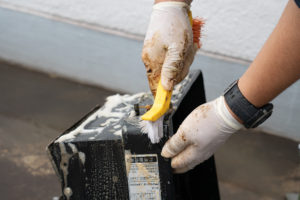 こびりついた油汚れも手作業で洗い落とします。隅々までクリーンな状態で、新たな入居者をお迎えします。